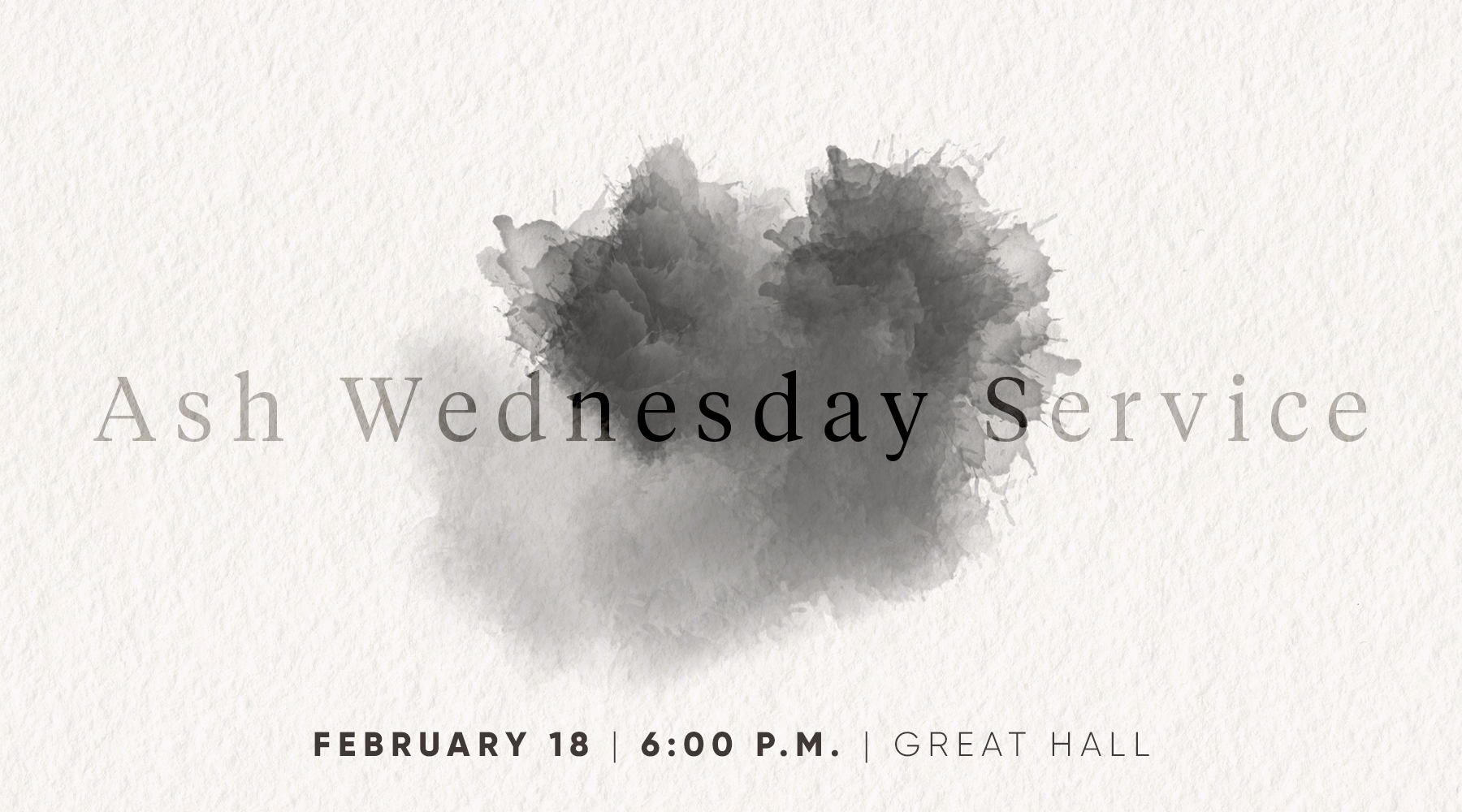 To help set this season apart, we invite you to a special Ash Wednesday service on Wednesday, February 18, from 6 – 7 p.m. in the Great Hall. During this time of worship, we will receive ashes as a sign of mourning and repentance.